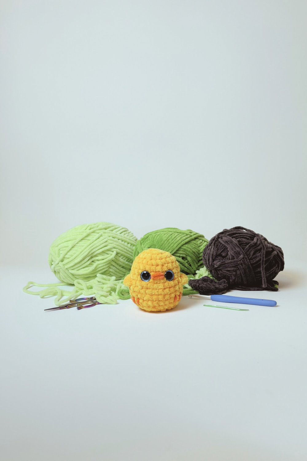 Materials. Chenille yarn. Polyester fiber fill. Plastic safety eyes. Not designed for children under 5 years old.