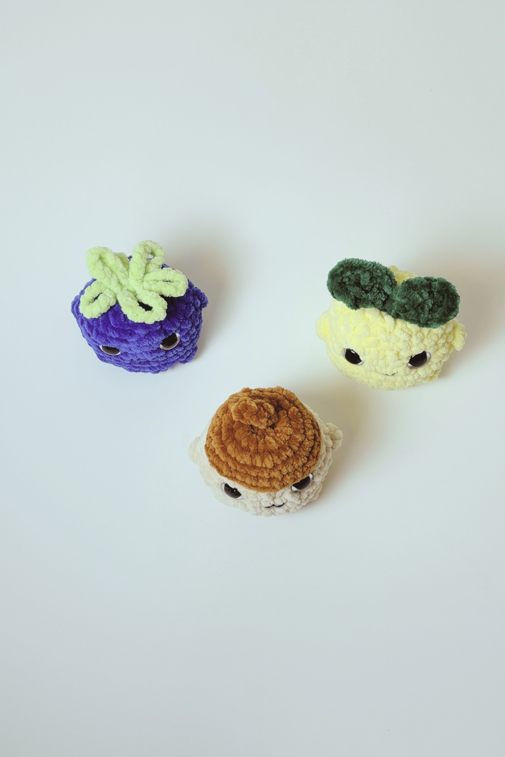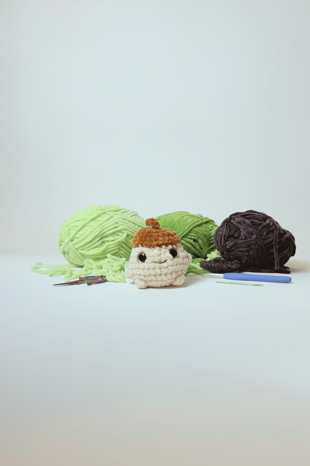 Materials. Chenille yarn. Polyester fiber fill. Plastic safety eyes. Not designed for children under 5 years old.